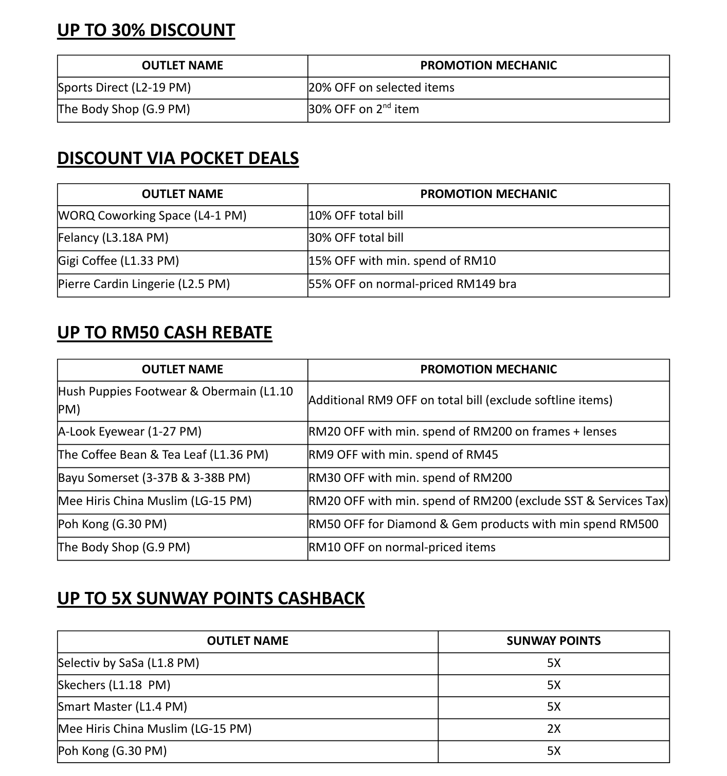 For specific terms and conditions of individual deals, kindly visit the respective merchant outlets and refer to their staff to find out more.
